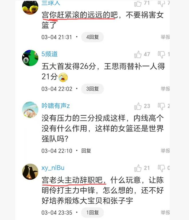没错,中国女篮最大的短板的就是宫鲁鸣,不会训练,不会临场指挥,理念落后,看人眼力也特别差,居然把之前的李缘树为扛旗人,结果练了一二年就自我否定了。表现最好的王思雨在亚洲杯遭到打压,险些被淘汰出队。一年多以来,宫鲁鸣练不出新人,甚至老将不进反退,罗欣械就是明显的例子。球迷嘲笑道,宫鲁鸣是个人才啊,让中国女篮第四得9分,最后让巴西女篮超远三分打平。赶快主动辞职吧。诸位,你们说呢?