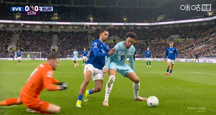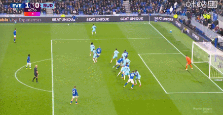 第31分钟,加纳任意球助攻,塔尔科夫斯基头槌破门,埃弗顿1-0伯恩利
