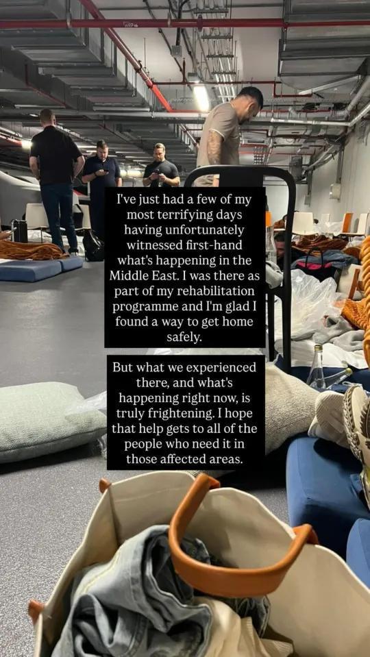 从他发在社交媒体上的动态来看,这位英超硬汉当时正和一群人凄惨地躲在地下防空洞里避难。